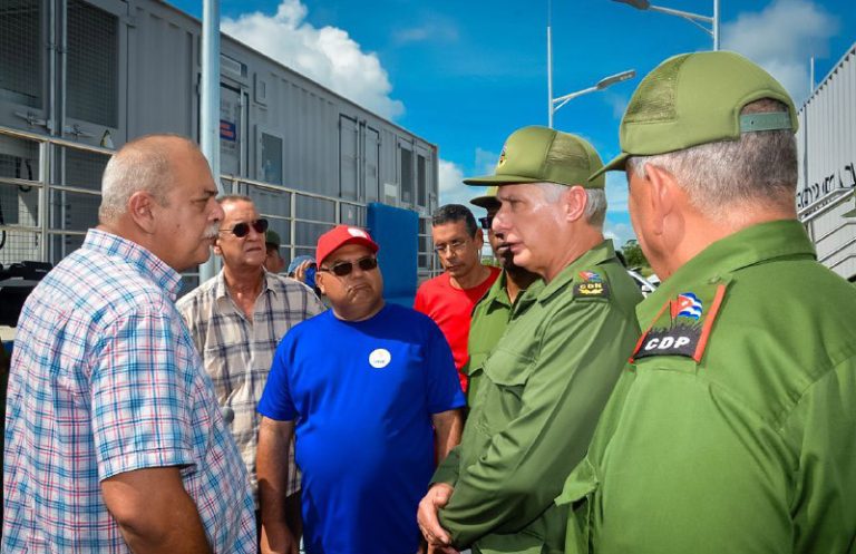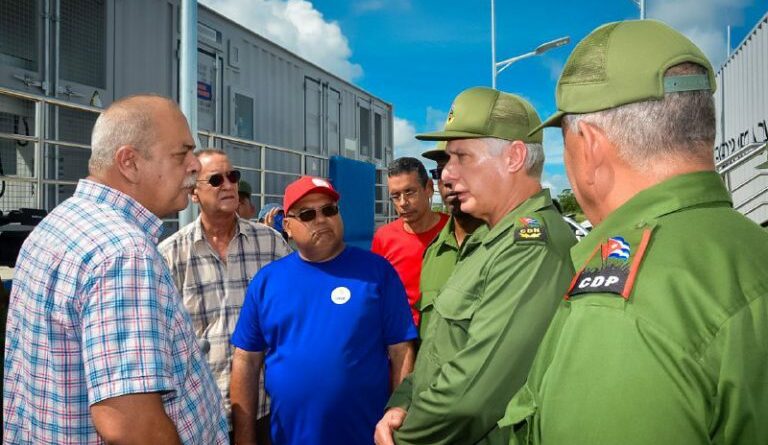 Durante la jornada el Primer Secretario de Comité Central del Partido Comunista de Cuba y Presidente de la República chequeó el estado de la infraestructura de los parques solares fotovoltaicos (PSFV), los centros de evacuación y la atención sanitaria en tiempo de desastre en recorrido por algunos de estos emplazamientos.