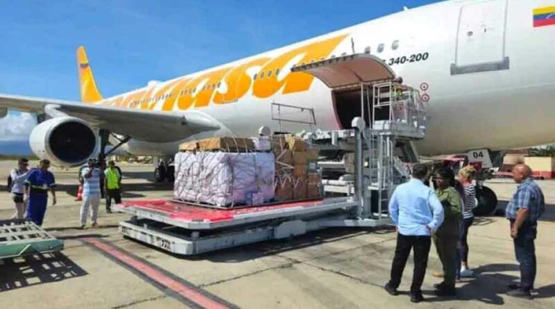 Módulos de alimentos y aseo proceden de la hermana República Bolivariana de Venezuela para asistir a los damnificados de la región oriental, arribaron al territorio por el Aeropuerto Internacional Antonio Maceo Grajales, en una aeronave de Conviasa.