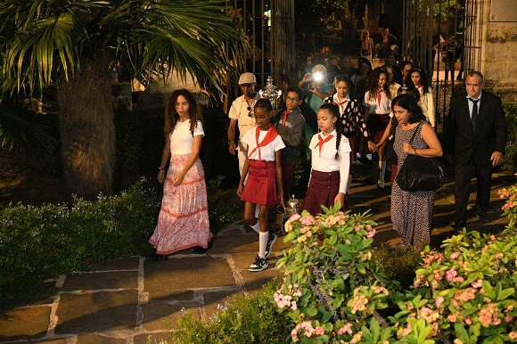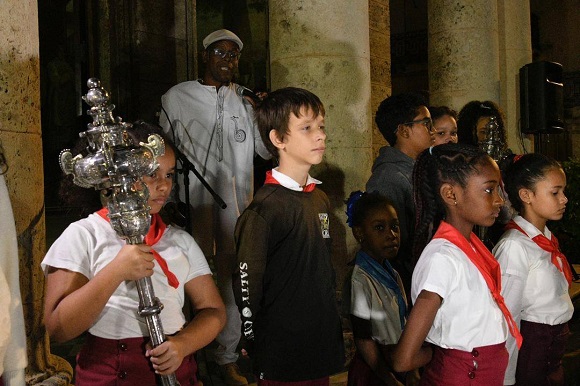 Desde el Museo de la Ciudad, otrora Palacio de los Capitanes Generales, salieron los pioneros hacia El Templete, donde comenzó la celebración esta noche de sábado con la poesía “Tres vueltas a la Ceiba”, de Sinecio Verdecia: “(…) quien se transfigura, resguardado por un árbol sagrado, restaura su naturaleza”.