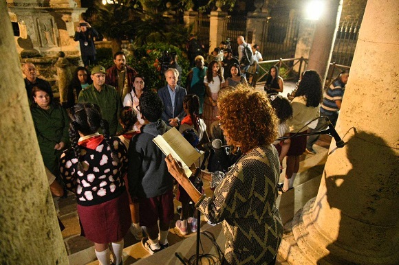 La destacada poetisa y Premio Nacional de Literatura en 2001, Nancy Morejón, pronunció las palabras de evocación de la fecha. Recordó al eterno Historiador de la Ciudad de la Habana, Eusebio Leal Spengler, “a través de dos mujeres que significan la cubanidad que guarda hoy este sitio”: Omara Portuondo y Graciela Rodríguez Pérez.