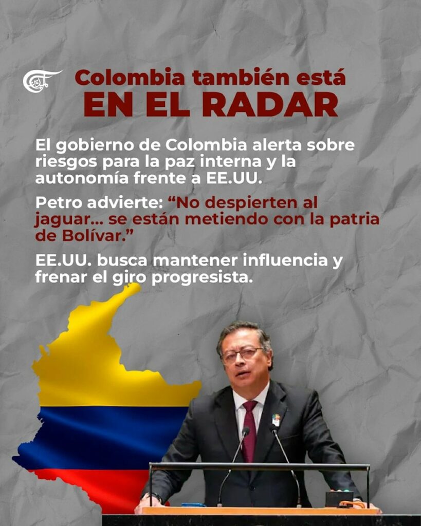 “Los narcotraficantes viven en Miami, Nueva York, París y no viven en las lanchas donde caen los misiles y solo matan pobres y solo matan migrantes latinoamericanos. Los narcotraficantes viven al lado de la casa de Trump”, respondió el presidente colombiano quien ya había denunciado desde Naciones Unidas las intenciones reales de Trump con su despliegue en el Caribe.