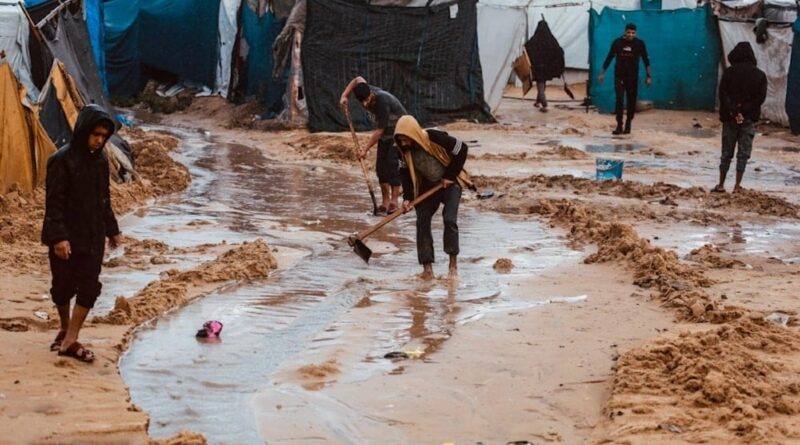 El Consejo Supremo de Asuntos Tribales en Gaza advirtió sobre una grave catástrofe humanitaria que amenaza a decenas de miles de personas desplazadas, luego de que la lluvia anegara sus tiendas de campaña y transformara los campamentos en pantanos de lodo.