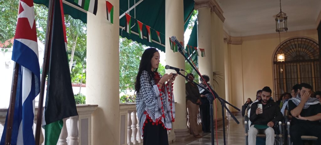 «La esperanza de libertad para Palestina y la resiliencia y firmeza de Cuba son parte de una misma causa, la causa de la humanidad contra la explotación y por el comunismo. Cuando Cuba existe Palestina se fortalece, y cuando Palestina lucha, Cuba se engrandece, la victoria de uno será la victoria de todos, la derrota del imperialismo será el amanecer de la humanidad».