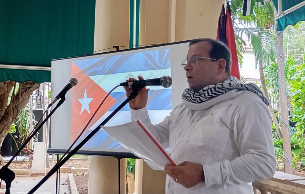 La Habana, 28 de noviembre de 2025.-«La solidaridad con el pueblo palestino para Cuba no es sólo un principio, es acción, es fidelidad a nuestra historia y a nuestros valores», expresó Fernando González Llort, Héroe de la República de Cuba y presidente del ICAP, en la ceremonia conmemorativa por el Día Internacional de Solidaridad con el Pueblo Palestino desde el Instituto Cubano de Amistad con los Pueblos (ICAP).