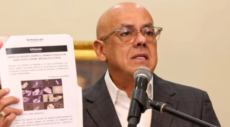 Presidente de la Asamblea Nacional, Jorge Rodríguez, acusa a militares de Estados Unidos de ejecutar a venezolanos y violar la Convención de Ginebra.