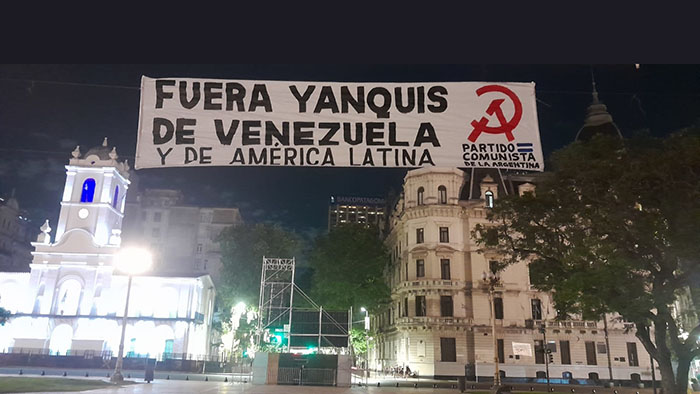 “El Partido Comunista de la Argentina repudia la declaración del presidente de Estados Unidos, Donald Trump, ordenando un bloqueo ‘total y completo’ de todos los buques petroleros sancionados que entren o salgan de Venezuela”, dice el comunicado y advierte que tal aseveración del mandatario yanqui “incluye además falsas acusaciones de terrorismo, narcotráfico y trata de personas contra el gobierno de la República Bolivariana”.