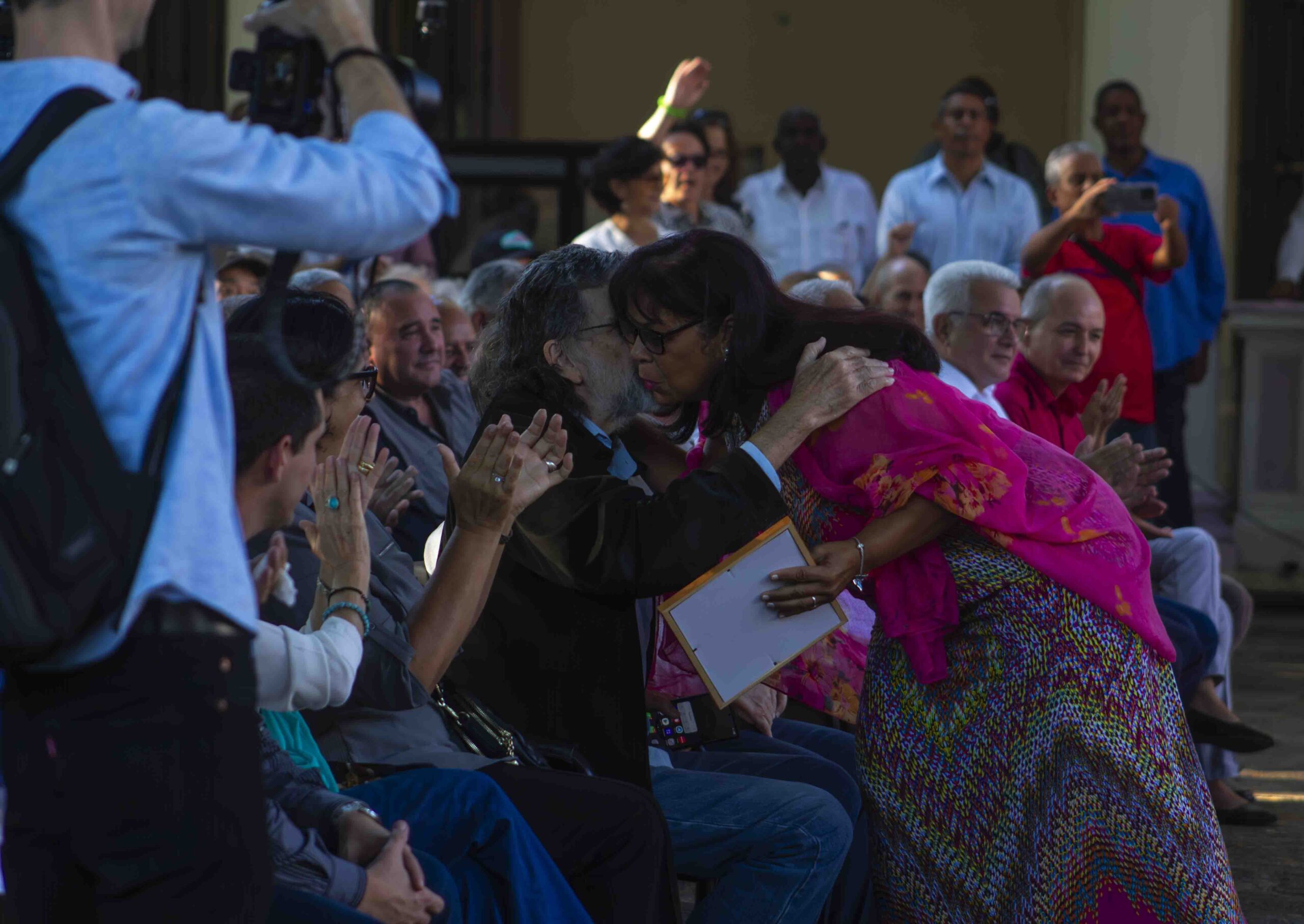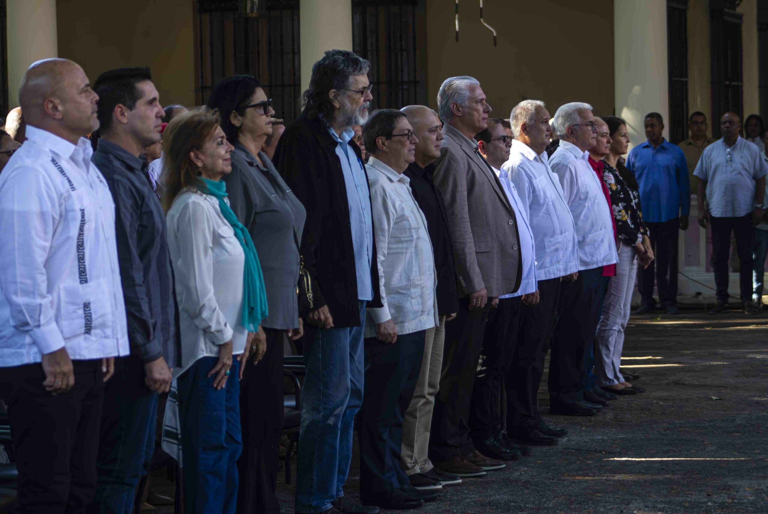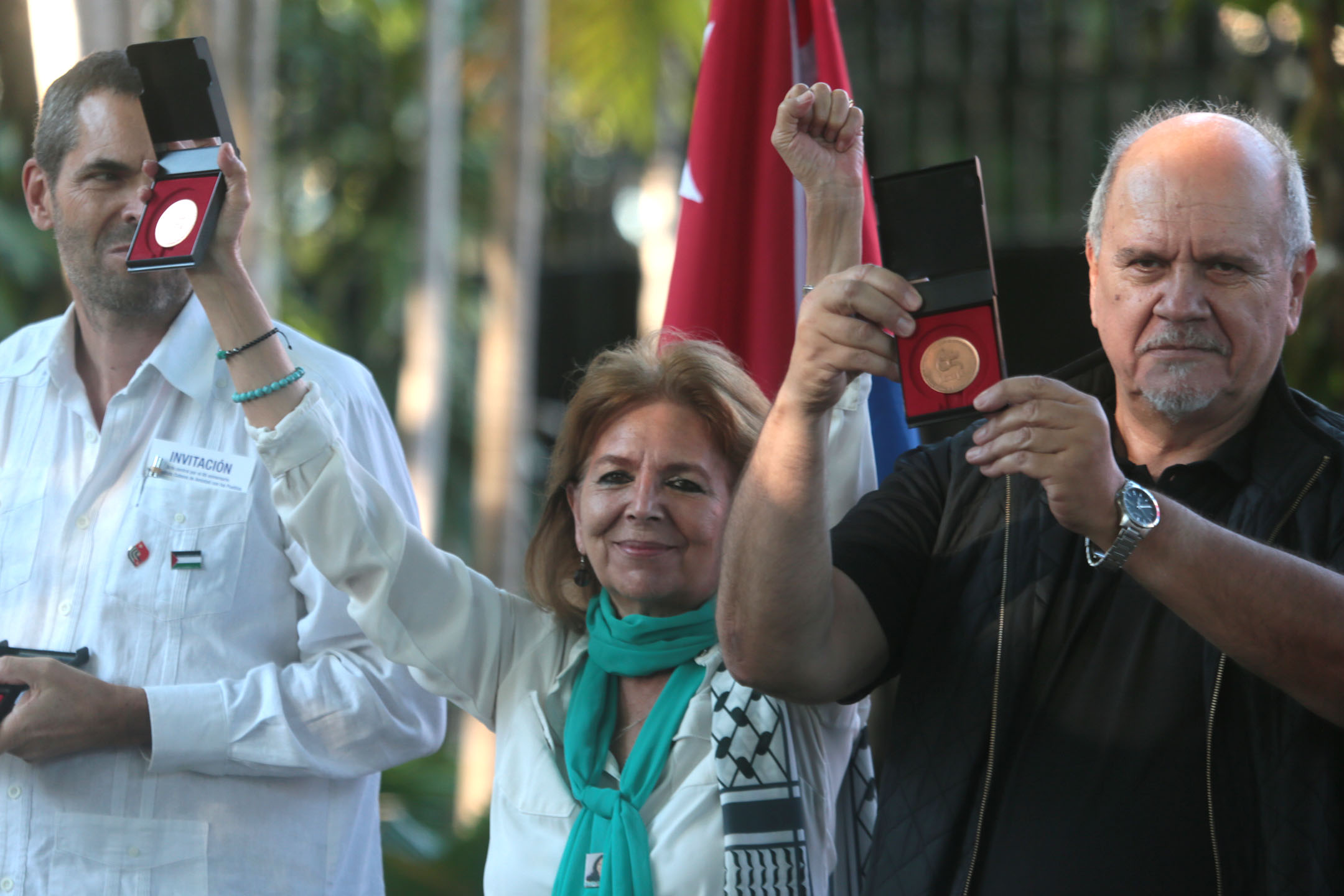 La ceremonia contó también con la presencia de Roberto Morales Ojeda, miembro del Buró Político del Comité Central del Partido Comunista de Cuba (PCC) y secretario de Organización; Bruno Rodríguez Parrilla, Ministro de Relaciones Exteriores de Cuba; Noemí Rabasa Fernández, vicepresidenta del ICAP; funcionarios de organismos e instituciones cubanas y destacados militantes de larga trayectoria en los movimientos de solidaridad con Cuba.