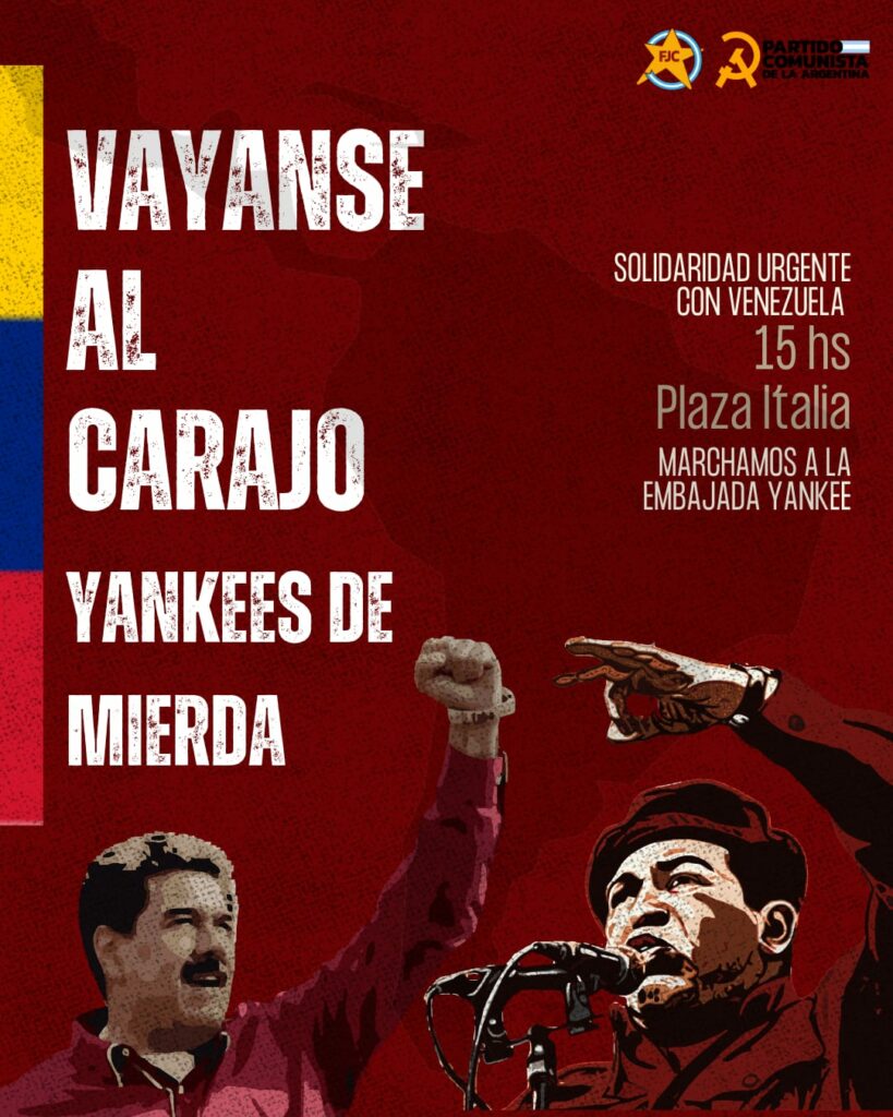 Desde el Partido Comunista de la Argentina rechazamos y condenamos la agresión de Estados Unidos contra Venezuela y exigimos la inmediata liberación del presidente, Nicolás Maduro, y su esposa, Cilia Flores, secuestrados por las fuerzas estadounidenses en un acto que constituye una violación flagrante del derecho internacional.