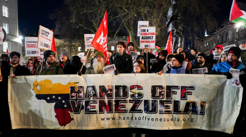Cientos de manifestantes salieron a las calles de Londres este lunes para protestar contra la agresión militar estadounidense en Venezuela, que terminó con el secuestro del presidente del país, Nicolás Maduro, el pasado sábado.