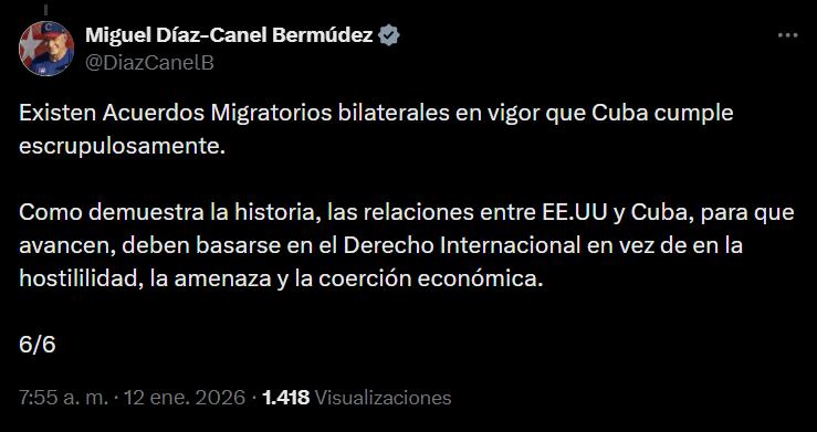 El presidente de Cuba, Miguel Díaz-Canel, desmiente este lunes en la red social X supuestos contactos entre La Habana y la Casa Blanca.