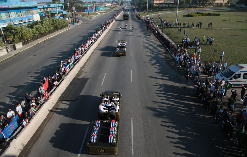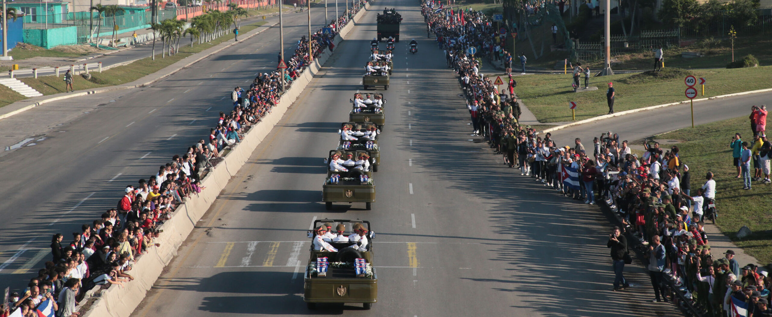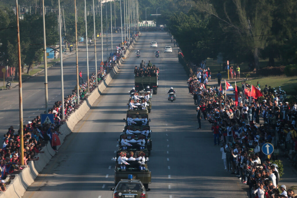 Es tradición de las cubanas y cubanos tomar las calles como tributo y homenaje a sus héroes. No es la primera vez que todas las generaciones se unen para custodiar las caravanas vestidas con banderas que abrazan los restos de los más aguerridos.