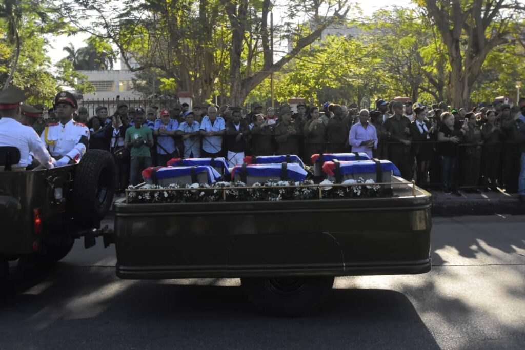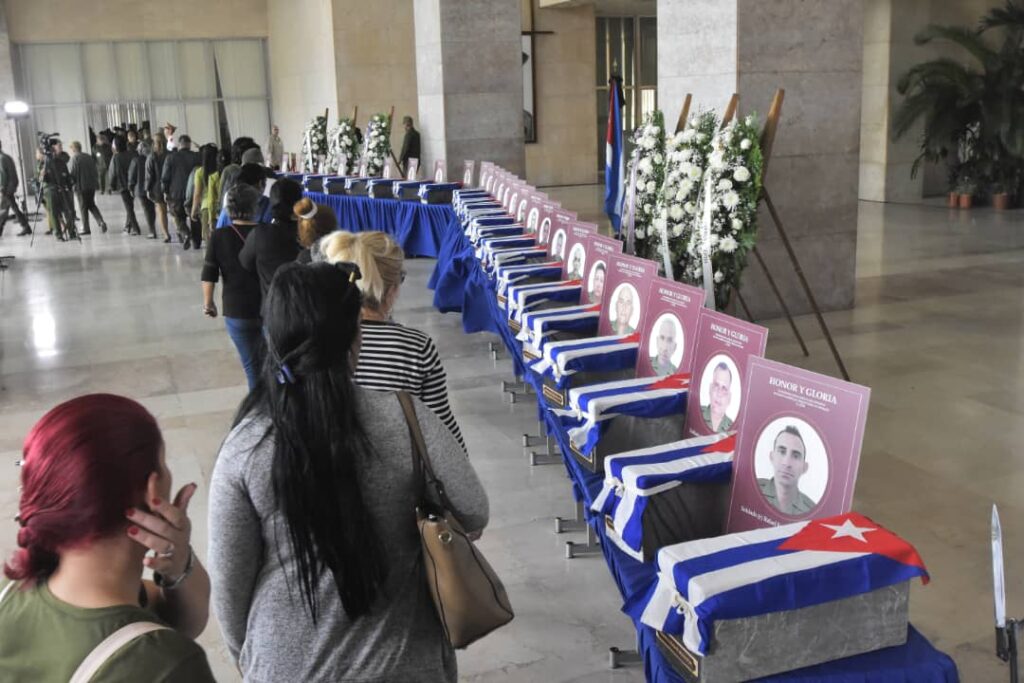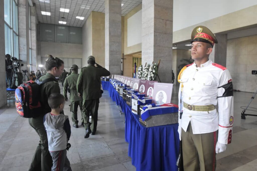 La marcha fúnebre sonaba en el alma de cada cubano y cubana, los restos de los hermanos caídos en fiero combate en tierra de Bolívar y Chávez, llegaron a suelo patrio cubiertos por la Bandera de la Estrella Solitaria. Cuba abraza a sus hijos.