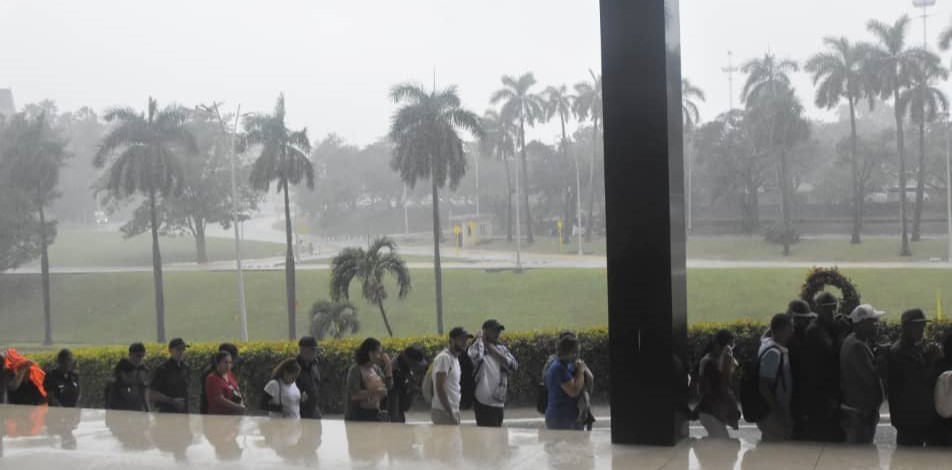 El cielo los traía bajo un sol naranja. La casualidad dibujó a la mañana de gris, llovió a cántaros, nadie abandonó la fila para rendir tributo a los 32 Héroes que se «inscriben eternamente en el altar de la Patria».