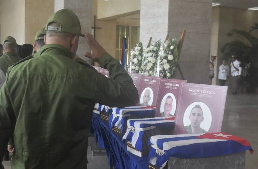 La marcha fúnebre sonaba en el alma de cada cubano y cubana, los restos de los hermanos caídos en fiero combate en tierra de Bolívar y Chávez, llegaron a suelo patrio cubiertos por la Bandera de la Estrella Solitaria. Cuba abraza a sus hijos.