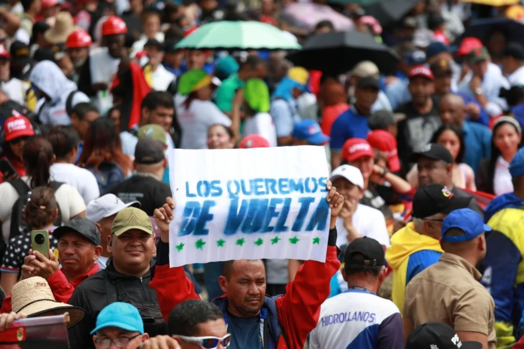 Anais Herrera, representante del movimiento sindical, exigió al régimen de Donald Trump el retorno del jefe de Estado, “porque es nuestro presidente y lo queremos de vuelta, estamos en las calles y no descansaremos”.