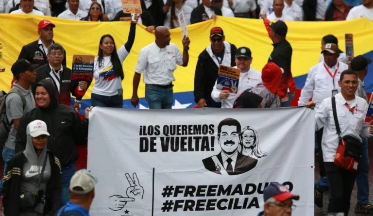 Durante la movilización masiva en Caracas, la clase obrera exigió una respuesta global que rechace esta flagrante violación del derecho internacional, la soberanía nacional y los derechos humanos del pueblo venezolano. “No permitiremos que el imperialismo norteamericano arrebate a nuestro líder bolivariano ni a su compañera de lucha”, afirmó un vocero del movimiento sindical presente en la concentración.