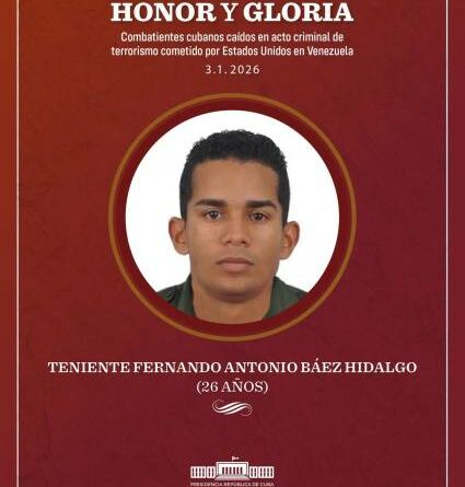 “Esto ha sido terrible. Siento como si hubieran arrancado un pedazo de mí. Fue un hijo superdeseado, el único que tuve”. La voz de Maidelín Hidalgo Hidalgo se quiebra. Desgarra. Aprieta el pecho. En su casa de Río Cauto, el silencio empezó el 3 de enero de 2026. Ese día, durante la agresión militar de Estados Unidos a Venezuela, Fernando Antonio Báez Hidalgo, su hijo adorado, de apenas 26 años, caía gloriosamente en Caracas. Fue el más joven de los 32 cubanos que perdieron la vida en la nación bolivariana.