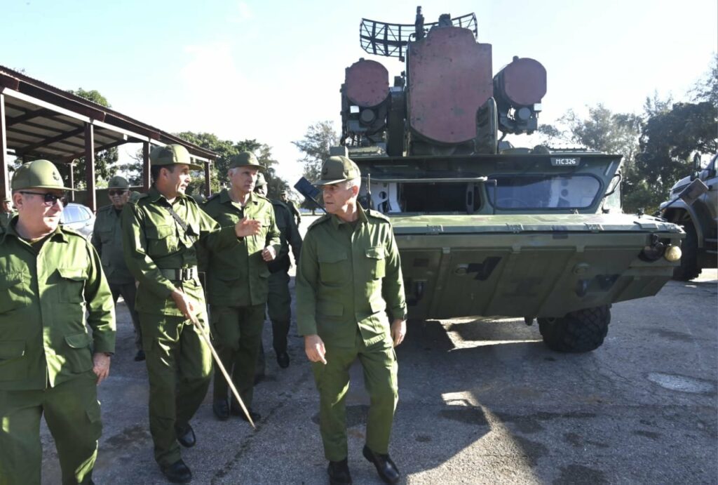 El siguiente punto en el itinerario fue una unidad de la defensa antiaérea. Allí, el Jefe de Estado conoció detalles sobre las condiciones de vida de los combatientes; corroboró el excelente estado de la técnica de combate; y pudo presenciar demostraciones en el terreno, de qué harían las fuerzas cubanas en caso de un ataque enemigo.