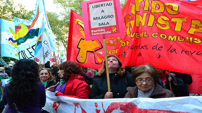 Con su estado de salud deteriorado, la líder de la Túpac Amaru lleva una década encarcelada. Desde entonces cambiaron gobiernos, pero el ensañamiento en su contra continúa, tal como el reclamo por su liberación que el viernes volvió a ganar las calles. Solana López, Secretaria de Géneros del PC, reafirmó como una tarea central la lucha por su liberación, “por todo lo que Milagro representa para las mujeres, para las comunidades indígenas y para todo nuestro pueblo”.