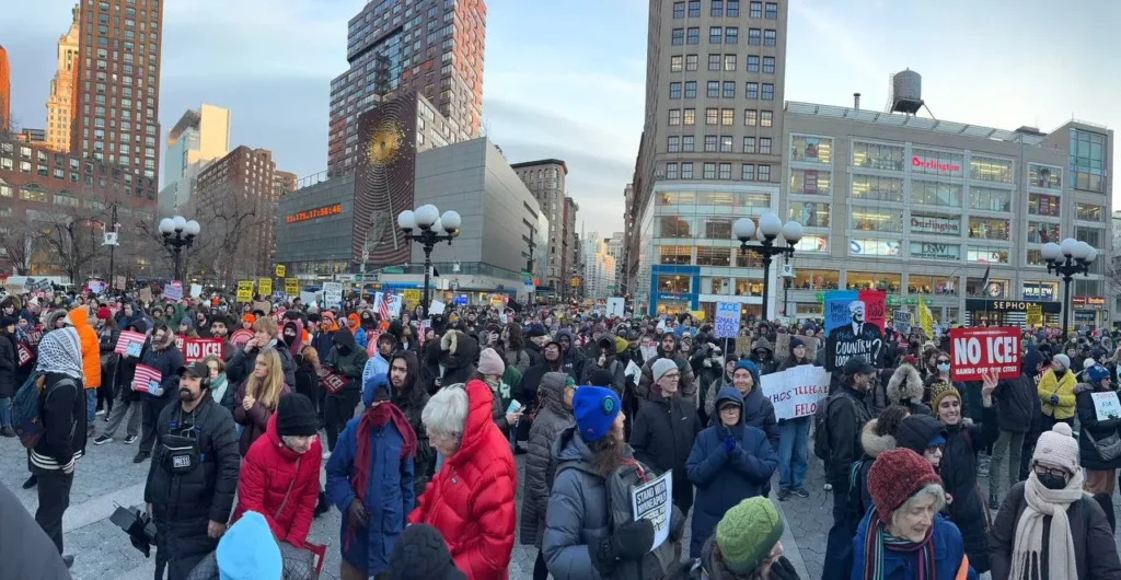 La movilización rebasó las fronteras del estado. En Nueva York, aproximadamente 3.000 manifestantes de más de 70 organizaciones marcharon desde Union Square hasta Madison Square Park. El recorrido se detuvo frente a empresas consideradas aliadas de la administración: Amazon, Home Depot, Palantir. Filadelfia y Washington DC registraron multitudinarias marchas en solidaridad con Minnesota.