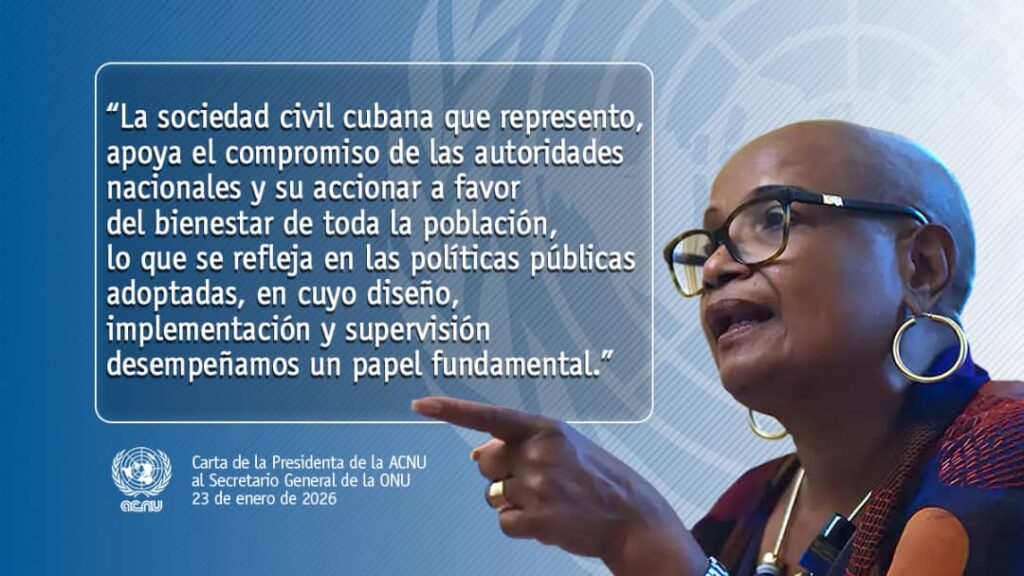 En un acto de defensa de Cuba, del derecho internacional y de la Carta de las Naciones Unidas, la sociedad civil cubana solicita al Secretario General de la ONU, António Guterres, que «inste, inequívocamente y sin dilación, al presidente de los Estados Unidos, Donald Trump, y a su administración, a abstenerse de recurrir a la amenaza o al uso de la fuerza contra la integridad territorial y la independencia del Estado cubano».