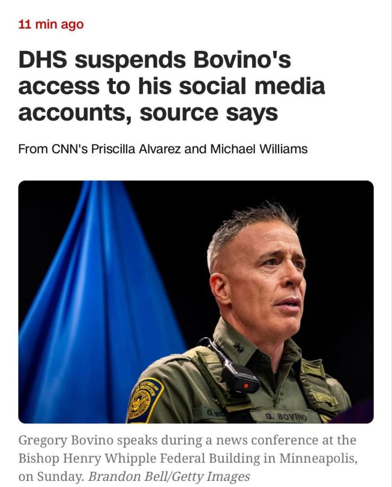 El Departamento de Seguridad Nacional ha restringido el acceso de Gregory Bovino a sus cuentas de redes sociales, informa CNN.