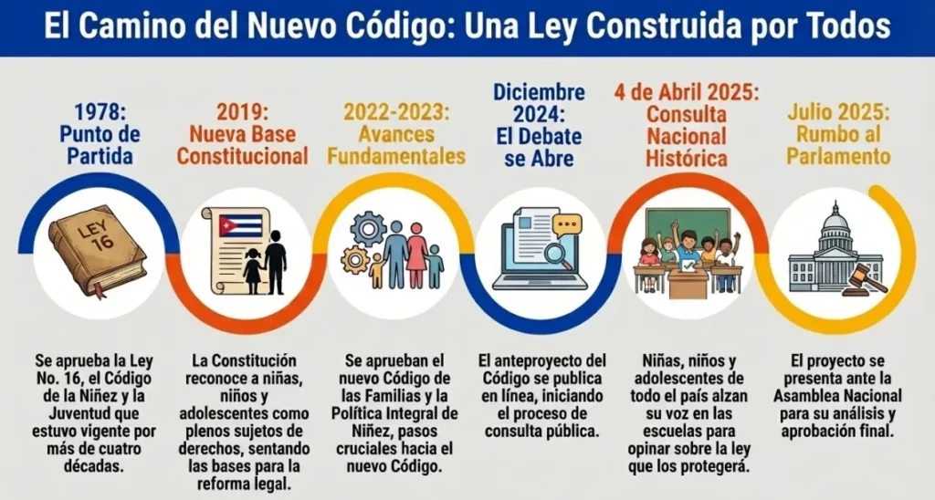 La aprobación del Código fue un proceso liderado por el Estado cubano, pero contó con la asistencia técnica, el acompañamiento metodológico y el apoyo especializado de UNICEF en Cuba, que ha trabajado durante años en el fortalecimiento institucional para la protección de la infancia. La organización jugó un rol clave en varios niveles.
