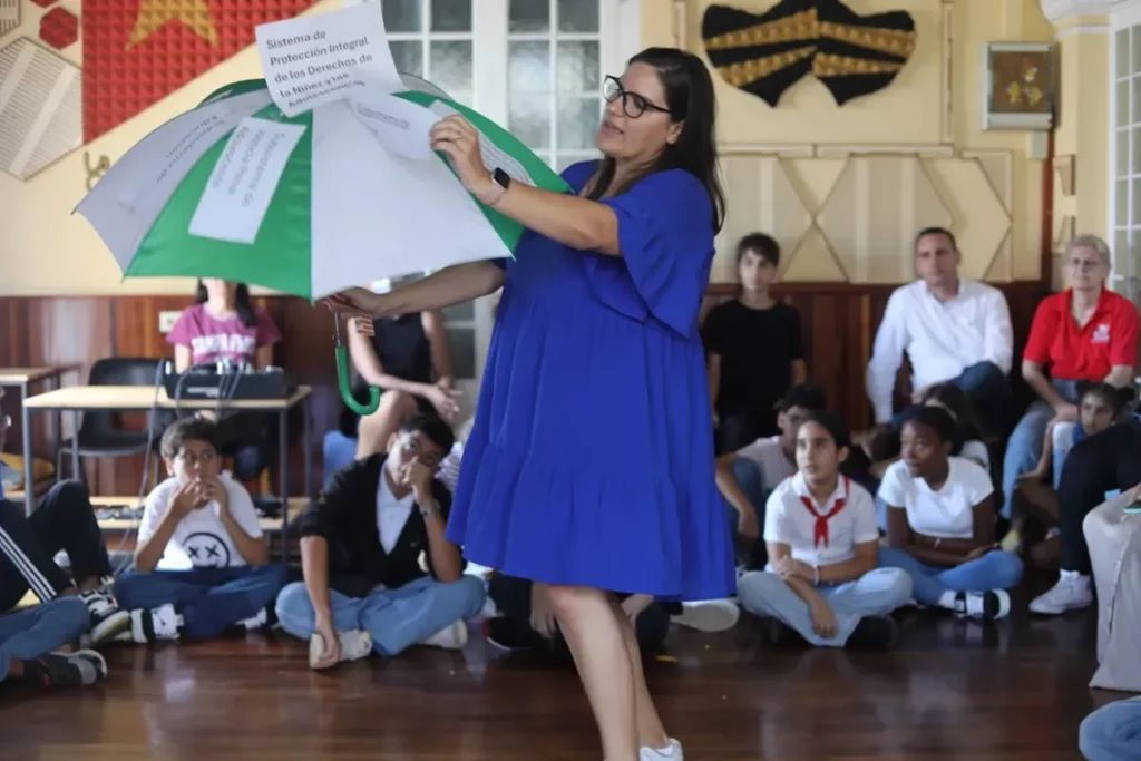 En la secundaria básica Fructuoso Rodríguez, en la capital, Raynel Castro insistió en la dimensión ética de ese derecho: “todos los adolescentes tienen el derecho a ser escuchados. Merecen el respeto sobre lo que piensan, sobre lo que sienten”. Sus palabras reforzaron una idea de que la participación infantil solo es auténtica cuando se ejerce en un clima de respeto.