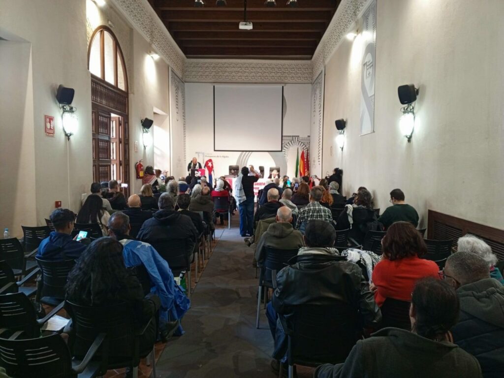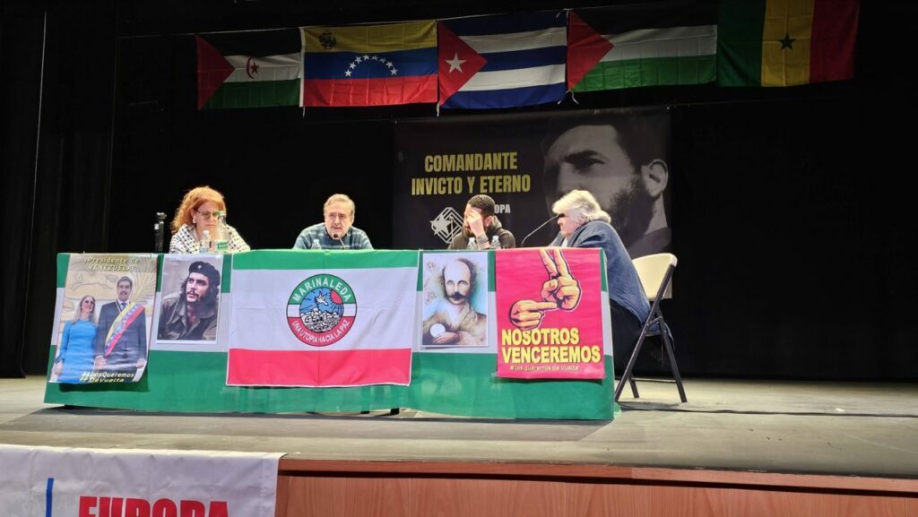 El pueblo andaluz de Marinaleda ofreció un digno marco para el cierre del Encuentro Internacional Europa por Cuba. Con la sala del gran anfiteatro de la localidad mostrando un lleno completo y galardonada por las banderas de Cuba, Venezuela, Palestina, la República Saharaui Democrática y por supuesto la de Andalucía. También se pudieron ver carteles con la imagen del presidente Nicolás Maduro y Cilia Flores, exigiendo que sean devueltos a Venezuela, de donde fueron secuestrados por fuerzas militares criminales de Estados Unidos, a las órdenes de Trump y Marco Rubio.