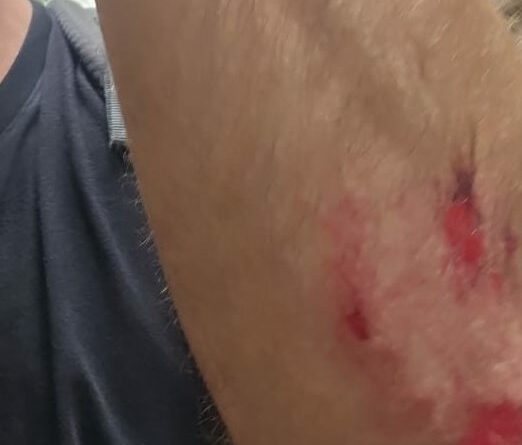 foto: el brazo de nuestro fotógrafo de Resumen Latinoamericano muestra las marcas de lo que fue una brutal represión contra manifestantes y prensa.