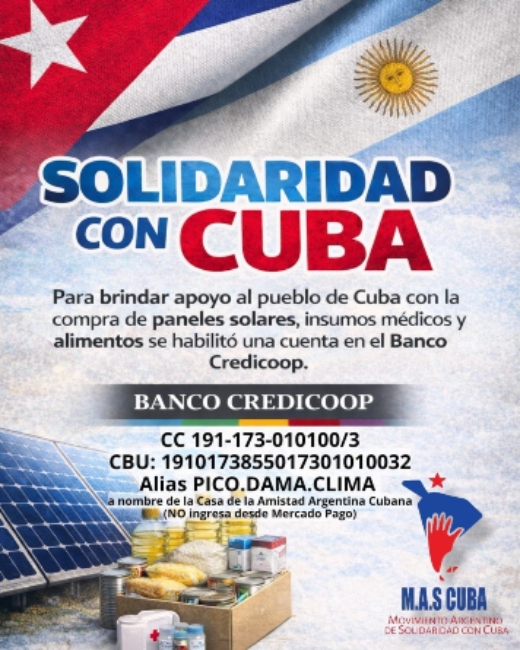 Llamamos a todos a acompañarnos en estas acciones pacíficas, pero concretas, que proponemos para acompañar al Pueblo Cubano, hemos habilitado la siguiente cuenta en el Banco Credicoop l