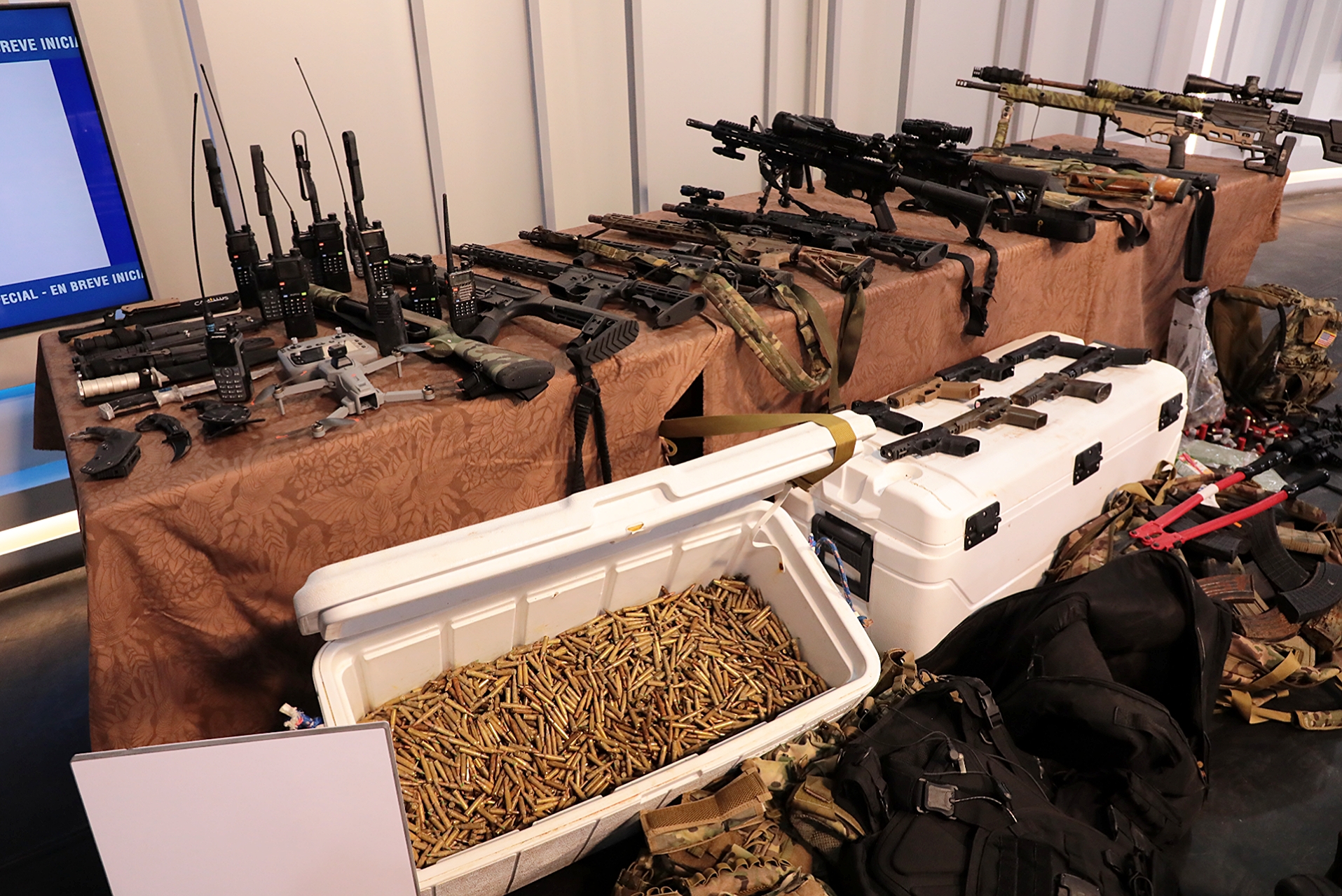 Más de 12 mil municiones. 14 armas largas: 12 fusiles de alto calibre, 2 escopetas con mira telescópica, 1 Dron, equipos de comunicaciones, chalecos antibalas, cascos, botas y vestimenta militar estadounidense, equipos de camuflaje, bombas molotov, planta eléctrica, para atentar contra el pueblo cubano.