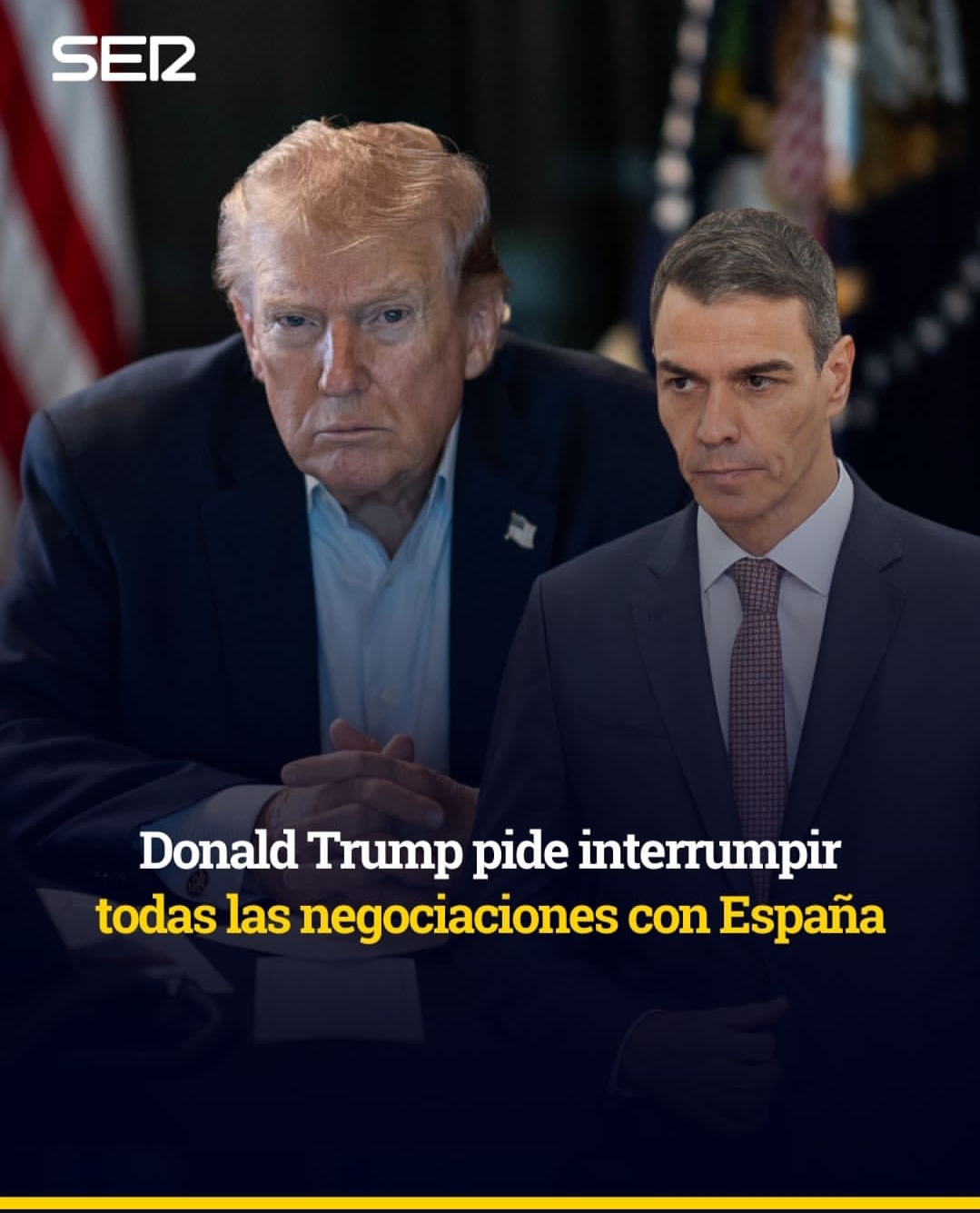 En el Salón Oval, durante una reunión con el canciller alemán Friedrich Merz, Trump aseguró que la tensión con Madrid se originó cuando, según su versión, los países europeos accedieron a pedido suyo a elevar el gasto en defensa al 5 % del PBI (Producto Bruto Interno), entre ellos Alemania, algo que —afirmó— España rechazó. «Fueron el único país de la OTAN que no aceptó subir al cinco por ciento. Querían mantenerse en el dos por ciento, y ni siquiera pagan ese dos por ciento», sostuvo.