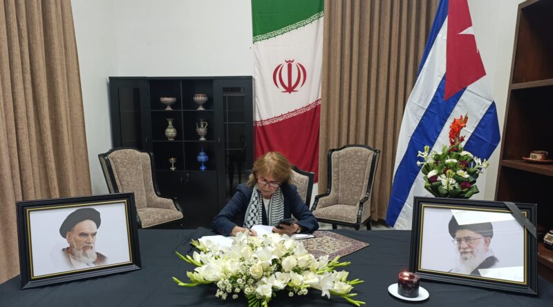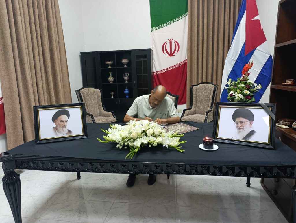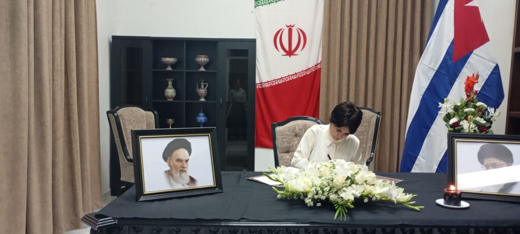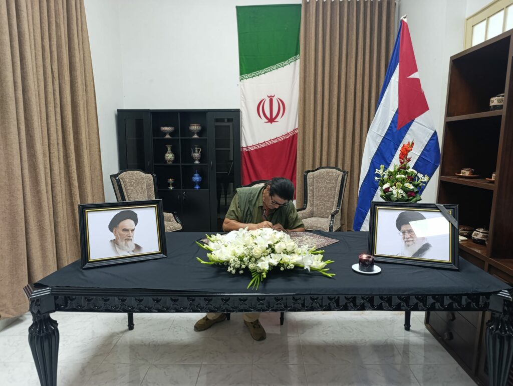 Firman libro de condolencias desde Cuba en honor al Ayatollah Ali Jamenei y el heroico pueblo de Irán