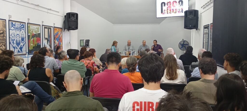 Fernando Luis Rojas, director del Fondo editorial de Casa de las Américas y Coordinador del Capítulo Cubano de la REDH-CUBA, moderó el intercambio entre el panel de intelectuales y los participantes de este encuentro. Fue destacada la presencia de Pedro Pablo Prada, quien culminó este año su misión en Argentina como embajador de la República de Cuba; Abel Prieto Jiménez, presidente de Casa de las Américas; Lis Cuesta Peraza (esposa del presidente cubano Miguel Díaz-Canel), directora de eventos del Ministerio de Turismo; argentinos residentes en Cuba y la participación especial de visitantes argentinos y latinoamericanos del Convoy Nuestra América.
