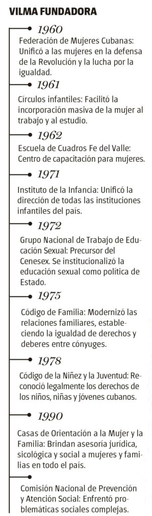 No hay rango ni condecoración que expliquen a Vilma. No la miden los cargos: fue «presidenta de las mujeres», sí, pero también fue quien exigía que la llamaran sin título, la que se enfadaba si le ponían flores en la mesa, la que interrumpía una reunión para preguntarle a una campesina cómo se llamaba su hija.
