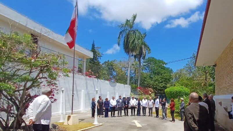 En acto solemne, ante el Embajador de la República Islámica de Irán en la República de Cuba, Zabihollah Naderi, representantes gubernamentales cubanos y amigos solidarios, izaron la bandera iraní tras concluir los 40 días de duelo nacional por el magnicidio cometido el 28 de febrero.
