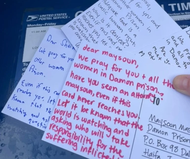 Las iglesias afiliadas a la asociación «Amigos del Camino» de América del Norte (FOSNA) enviaron más de mil postales dirigidas nominalmente a cada una de las prisioneras palestinas recluidas en el centro de detención israelí de Damoun.