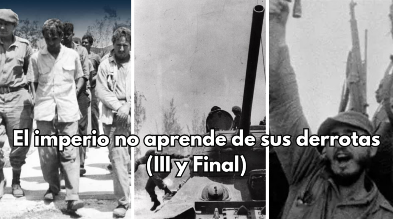 Ya no había nada que hacer, las siluetas de los barcos estadounidenses, que habían prometido participar si se lograba la imaginaria “cabeza de playa”, eran sombras en el horizonte y las esteras de los tanques que defendieron el suelo patrio se había mojado en el irredento mar, un mensaje de derrota surcó el éter para llegar a los organizadores de la catástrofe: «Jamás abandonaremos nuestra patria», fueron las últimas palabras entrecortadas y gemebundas de José Pérez San Román, al mando de la agresión como jefe de la titulada Brigada 2506, eran las dos de la tarde del histórico 19 de abril de 1961.