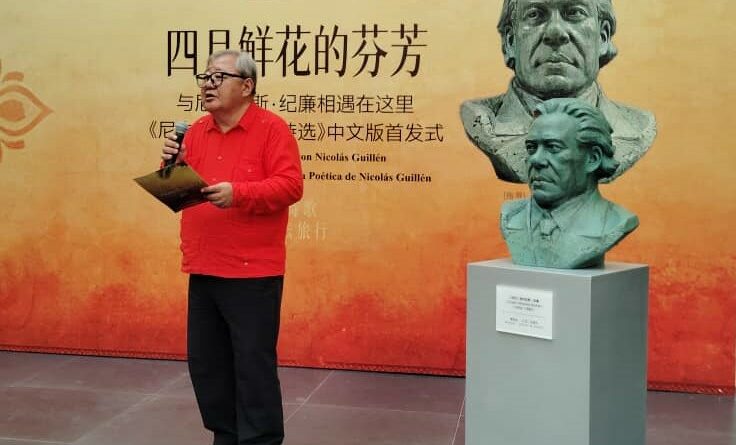 La ceremonia, celebrada en la tarde de este sábado, contó con la presencia de destacados poetas chinos y de otras latitudes que asisten al certamen literario. Como preámbulo a la develación escultórica, se realizó la presentación del libro “Todas las flores de abril”, una cuidadosa selección de poemas de Guillén traducida al mandarín por el académico Zhao Zhenjiang, profesor de la Universidad de Pekín y reconocido hispanista, así como por el Premio Nacional de Edición, Alex Pausides.