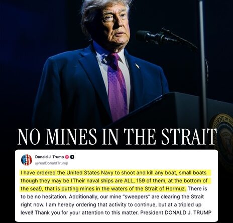 “He ordenado a la Armada de Estados Unidos que dispare y destruya cualquier embarcación, por pequeña que sea (¡todos sus 159 buques de guerra están hundidos en el fondo del mar!), que coloque minas en las aguas del estrecho de Ormuz. No debe haber vacilación alguna”, ha sentenciado en un mensaje publicado en su red, Truth Social, y en el que no ha aclarado los motivos de esta nueva amenaza.